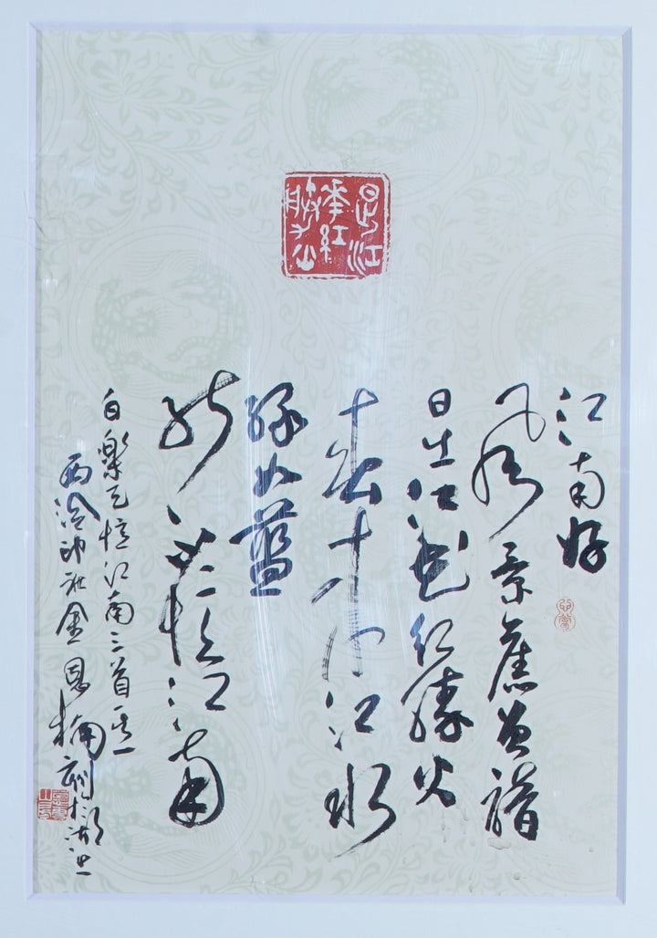 「江南好,風景舊曾諳。日出江花紅勝火,春來江水綠如藍。能不憶江南?」